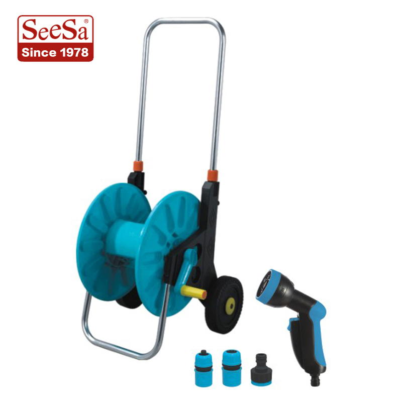 滾動式可伸縮軟管捲盤和推車是存放花園軟管的便捷實用的解決方案。它提供了一種井井有條、無憂無慮的方式,讓您的花園軟管在不使用時保持安心可靠。以下是使用滾動式可伸縮軟管捲盤和推車的一些好處: